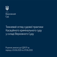 Огляд містить ряд актуальних позицій Касаційного кримінального суду, оприлюднених з 3 по 7 червня 2019 року.