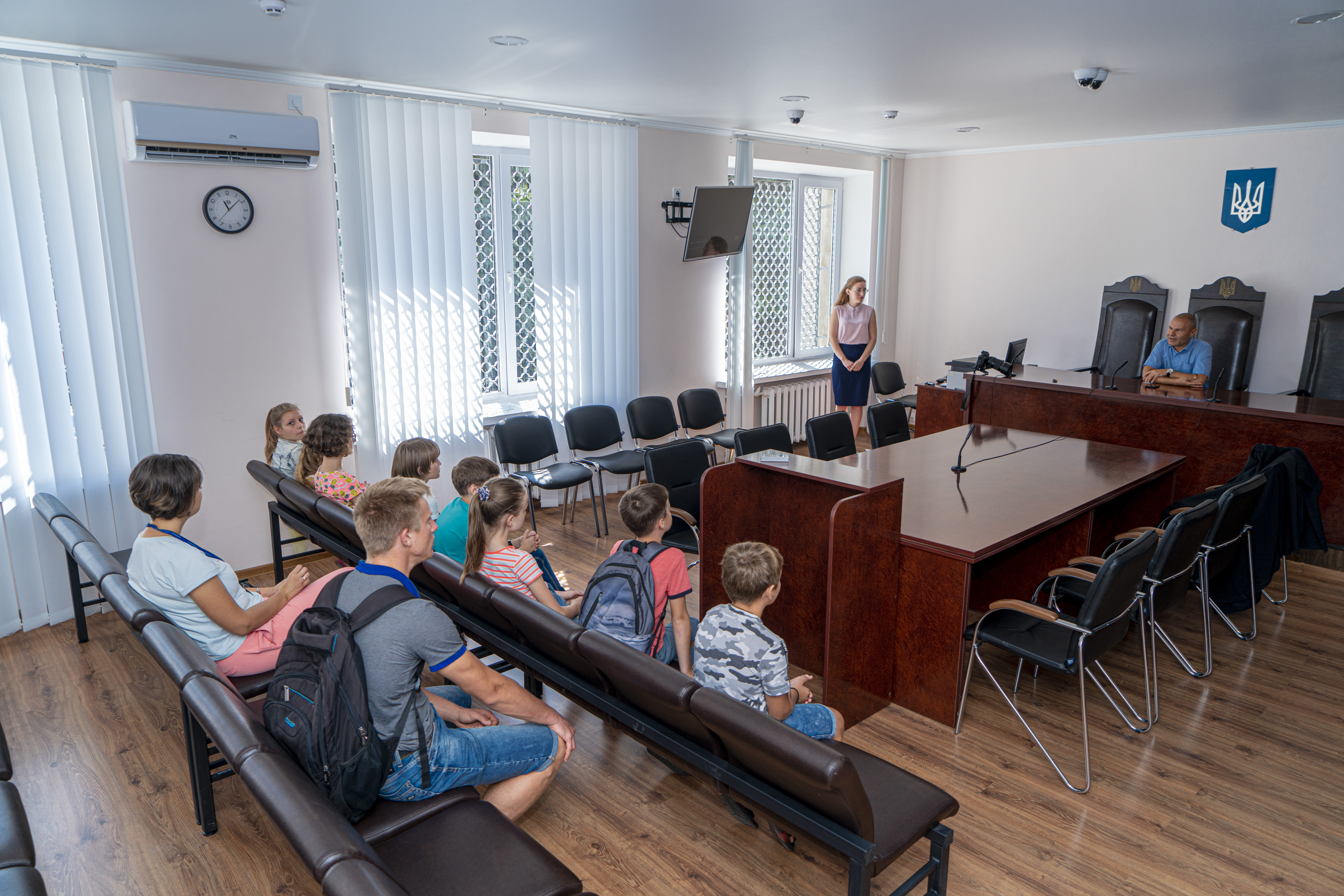 Енергійні, комунікабельні та допитливі учні засипали Сергія Болотіна, очільника установи, питаннями про будні судочинства. Їх цікавило усе до найменших дрібниць: чому судді ходять у мантіях, а не костюмах, яких справ найбільше, як охороняють суд, чи бувають сутички між учасниками проваджень, чи можна розбити захисне скло. Сергій Миколайович розповів дітям про роль суду в суспільстві і особливості роботи судді.