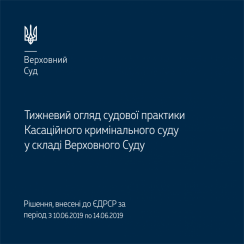 Огляд містить ряд актуальних позицій Касаційного кримінального суду, оприлюднених з 10 по 14 червня 2019 року.