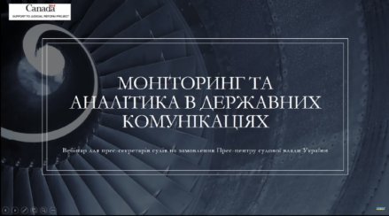 Вебінар організовано Прес-центром судової влади України за підтримки Українсько-канадського Проекту підтримки судової реформи в Україні.