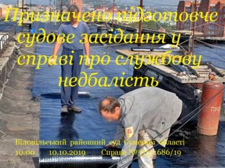 На 10:00 10 жовтня 2019 року призначено підготовче судове засідання у справі за обвинувальним актом стосовно фізичної особи – підприємця Є., який обвинувачується у вчиненні кримінального правопорушення, передбаченого частиною першою статті 367 Кримінального кодексу України – службова недбалість, тобто невиконання службовою особою своїх службових обов’язків через несумлінне ставлення до них, що завдало істотної шкоди.
