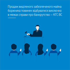 Аналіз положень статей 42, 44, 49, 80 Закону України «Про відновлення платоспроможності боржника або визнання його банкрутом» дає підстави для висновку про те, що продаж виділеного забезпеченого майна боржника (у випадку заперечення заставного кредитора проти схвалення мирової угоди) має відбуватися відповідно до встановленої цим Законом процедури виключно в межах справи про банкрутство, такий продаж є можливим за умови існування самого провадження про банкрутство боржника. Затвердження судом мирової угоди у справі про банкрутство та, як наслідок, закриття провадження у справі, продаж заставного майна боржника поза межами справи про банкрутство виключають судовий нагляд за такою реалізацією майна і порушують права інших кредиторів та боржника на збільшення ліквідаційної маси. Отже, виділ забезпечених речей з майна боржника, їх продаж на аукціоні та задоволення вимог забезпечених кредиторів за рахунок отриманих від продажу коштів має відбуватися до затвердження судом мирової угоди і закриття провадження у справі про банкрутство.