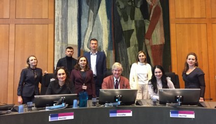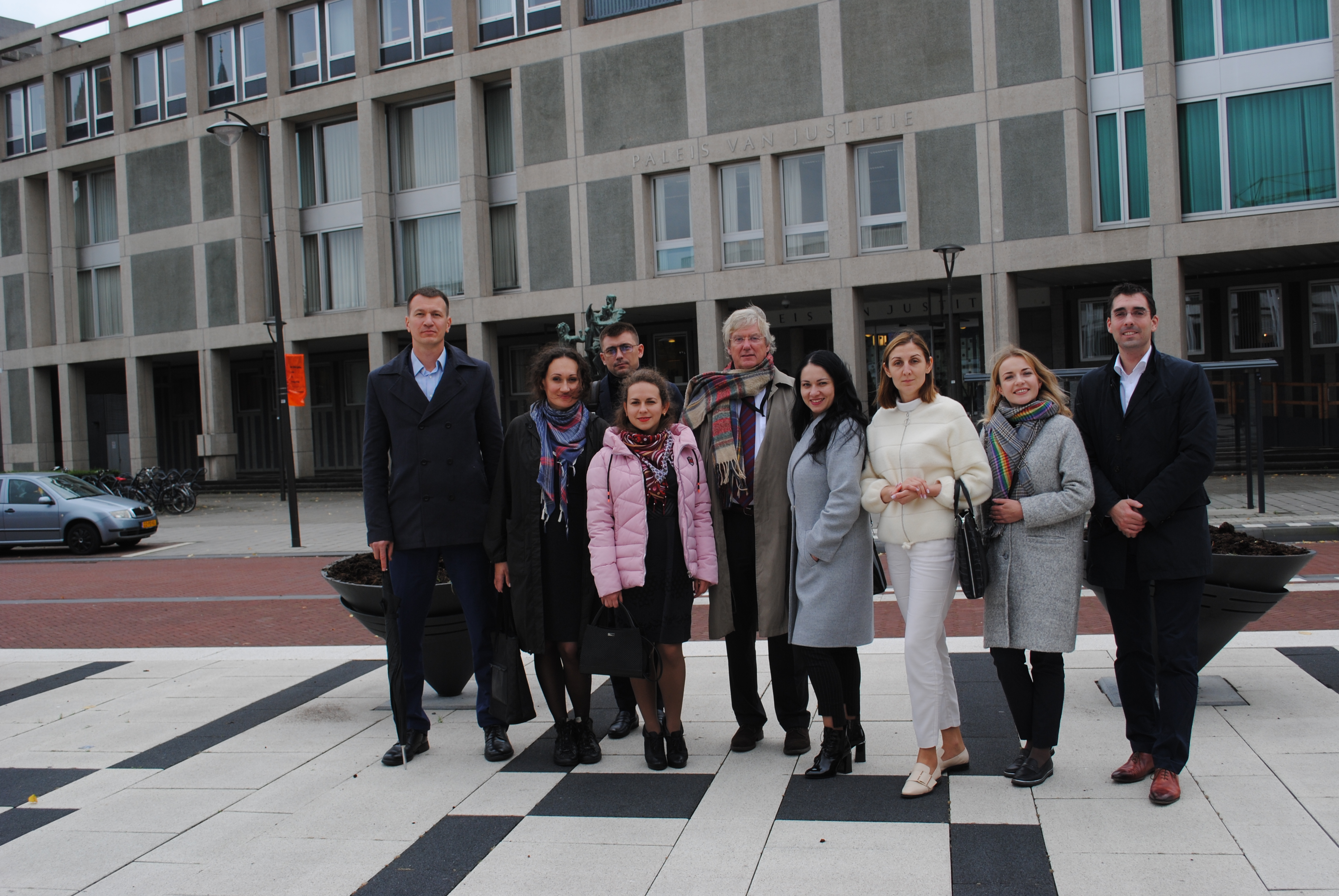 Українська делегація у Суді Центральних Нідерландів (суд першої інстанції) разом із суддями Лінеке де Клерк та Максім Ферштман (будівля суду в Утрехті, Нідерланди)