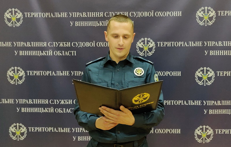 - Вірю, що слова цієї клятви закарбуються в пам’яті кожного. Упевнений, що кожний із вас стане доблесним співробітником Служби й не відступиться від слів Присяги, ‑ наголосив у своєму виступі начальник Територіального управління Служби судової охорони у Вінницькій області полковник Служби судової охорони Євгеній Прудиус.