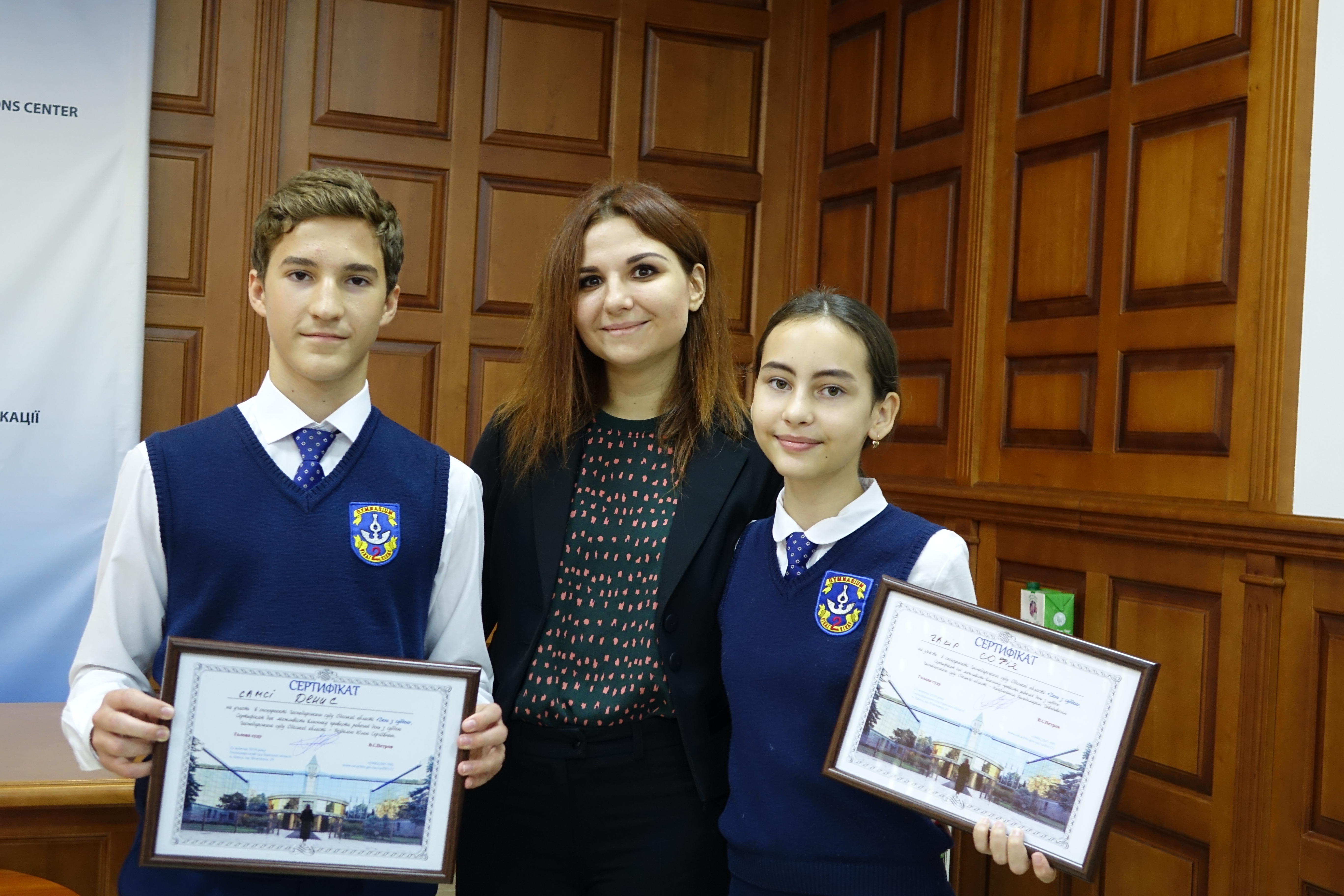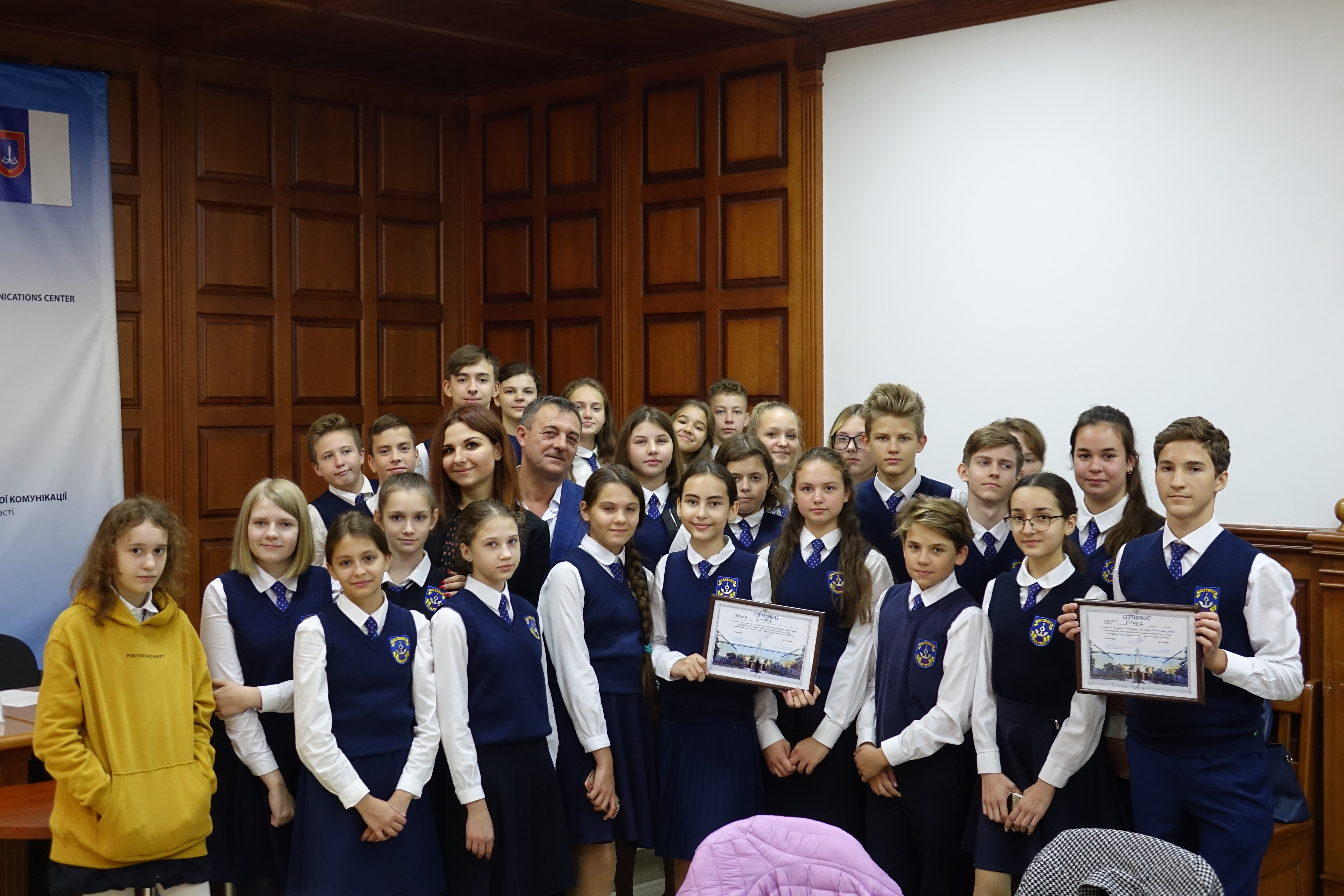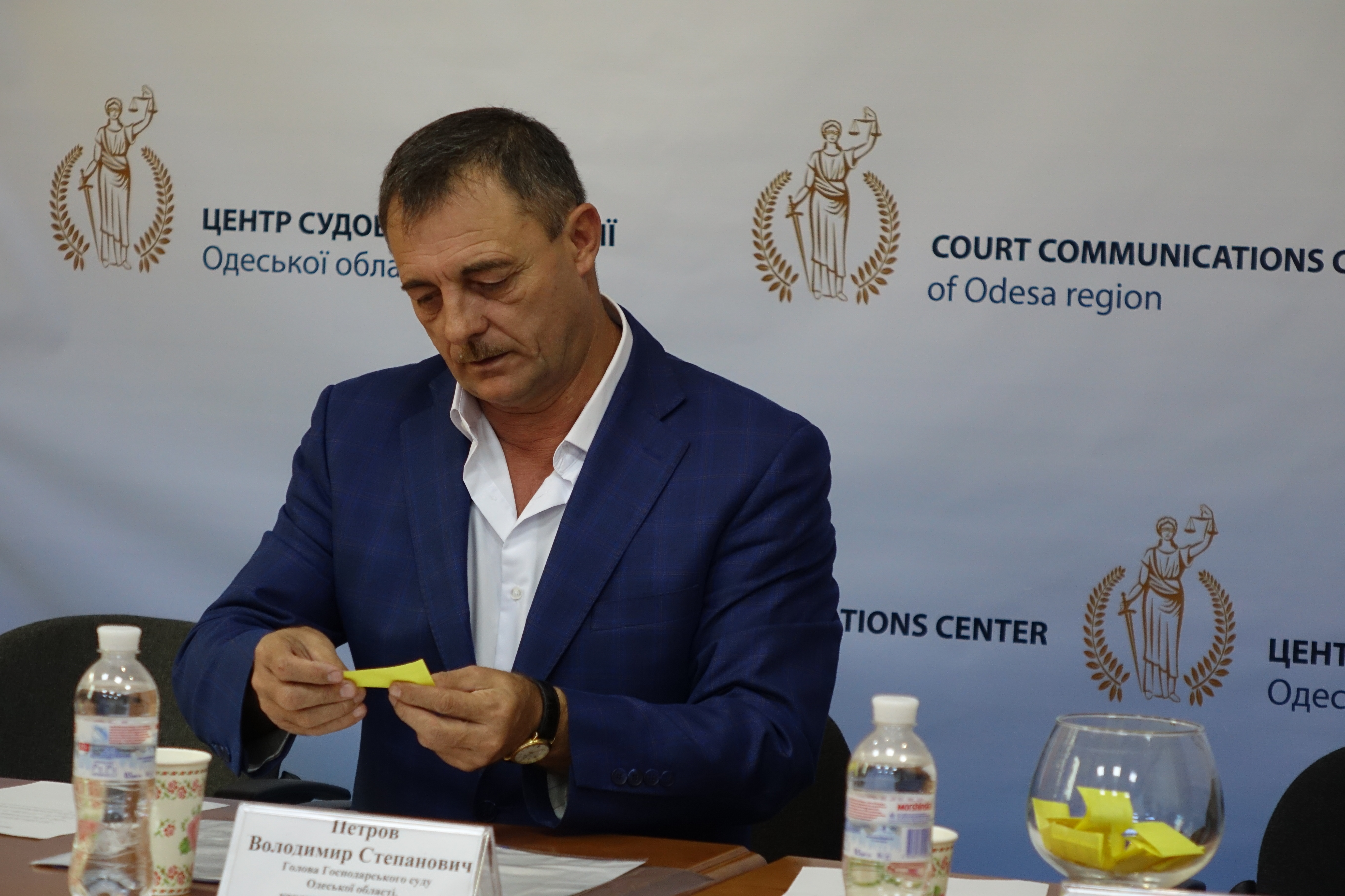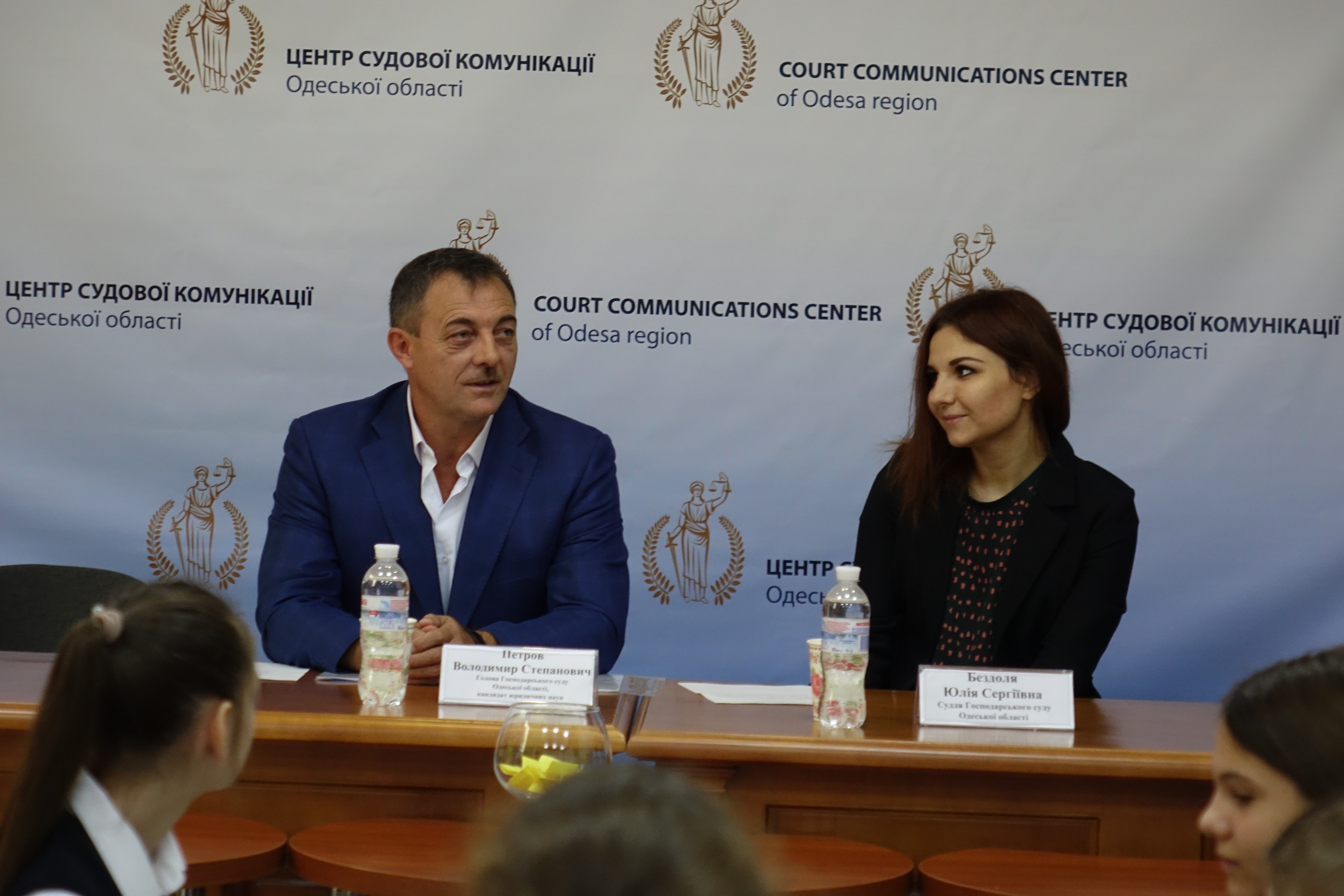 З вітальним словом виступив голова Господарського суду Одеської області Володимир Степанович Петров та судд я Юлія Сергіївна Бездоля. Голова суду у форматі відкритого діалогу провів бесіду з молоддю та міні-лекцію з історії створення і розвитку господарських (арбітражних) судів України та провів р озіграш сертифікатів на участь у спецпроекті ГСОО «День із суддею». Переможцями розіграшу стали учні Чакір Софія та Самсі Денис, які матимуть змогу опинитися на робочому місці судді та на власні очі побачити, як це бути суддею.