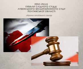Слідчий суддя Лубенського міськрайонного суду Полтавської області задовольнила клопотання слідчого про застосування запобіжного заходу у вигляді тримання під вартою підозрюваному у вчиненні злочину, передбаченого частиною 1 статті 115 Кримінального кодексу України (вбивство, тобто умисне протиправне заподіяння смерті іншій людині).