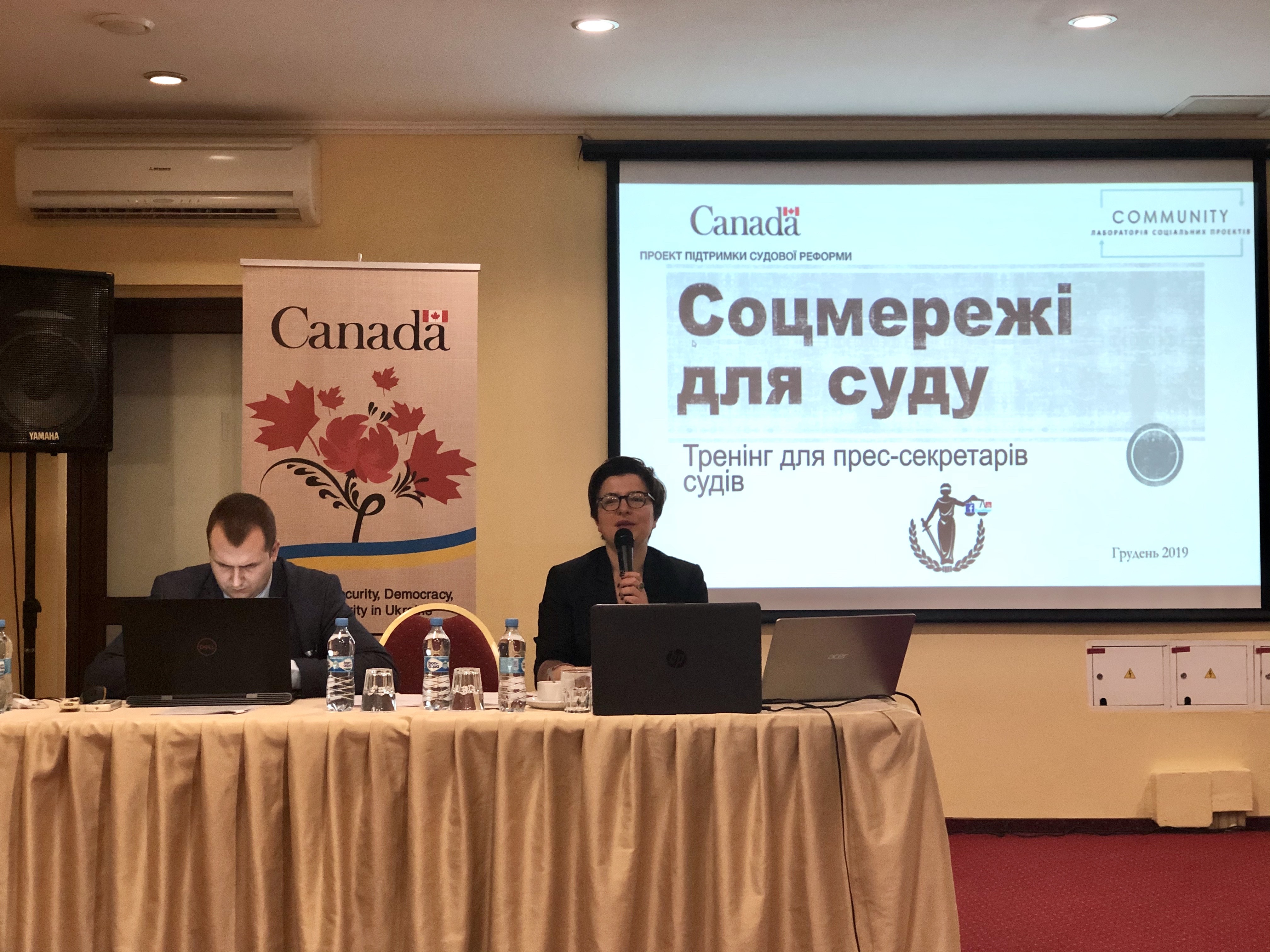 Комунікаційний тренінг проводила Арина Сатовська, директорка ГО «Громада. Лабораторія Соціальних Проектів», експертка із журналістики, стратегічних комунікацій та PR. Захід організовано українсько-канадським Проектом підтримки судової реформи.