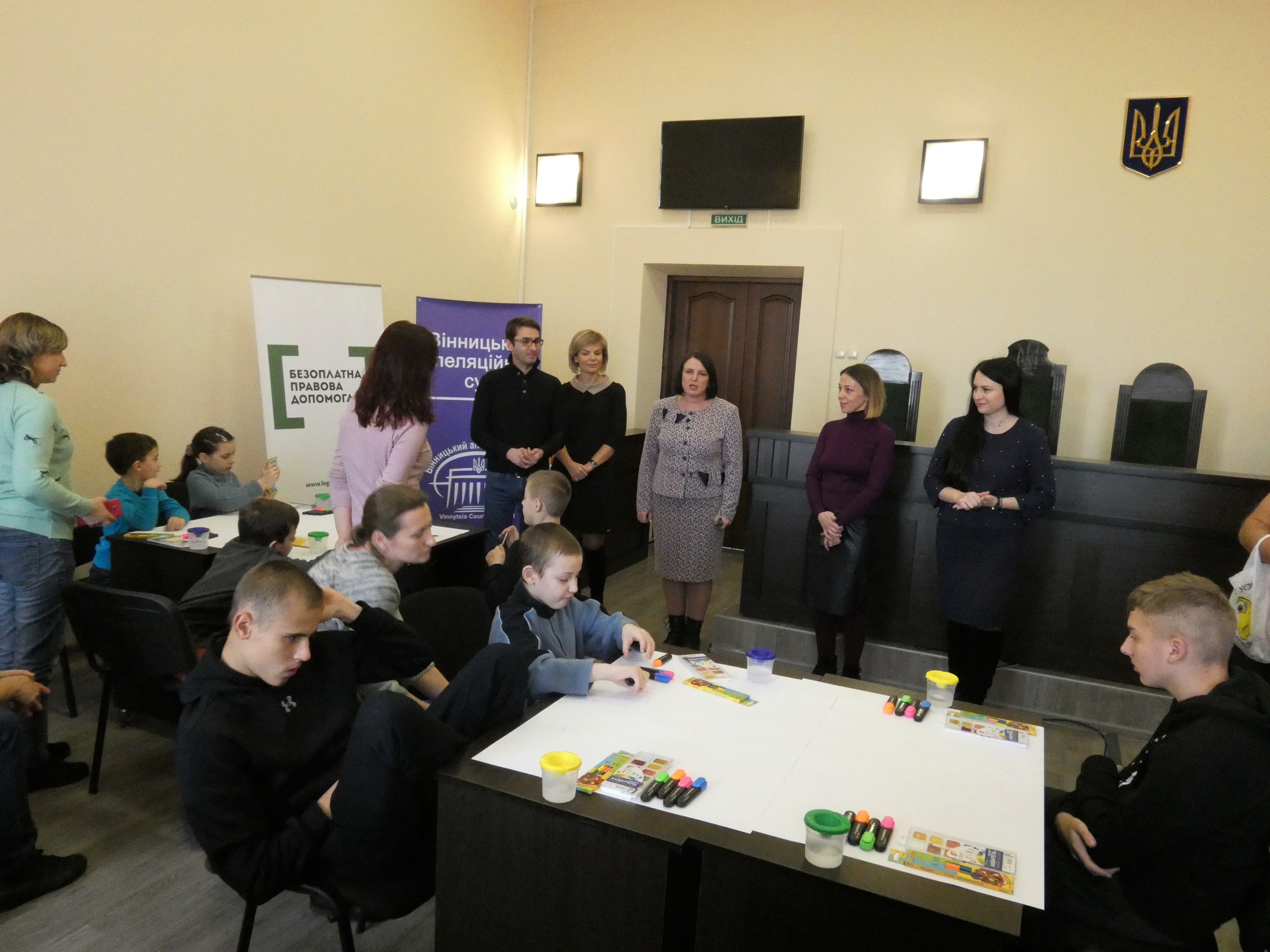 Сьогодні працівники апеляційного суду влаштували акцію «Суд – очима особливих дітей». Для цього закупили усе необхідне для малювання і запросили до творчості десятьох юних вінничан з обласного осередку Всеукраїнської громадської організації «Українська спілка осіб з інвалідністю – УСІ».