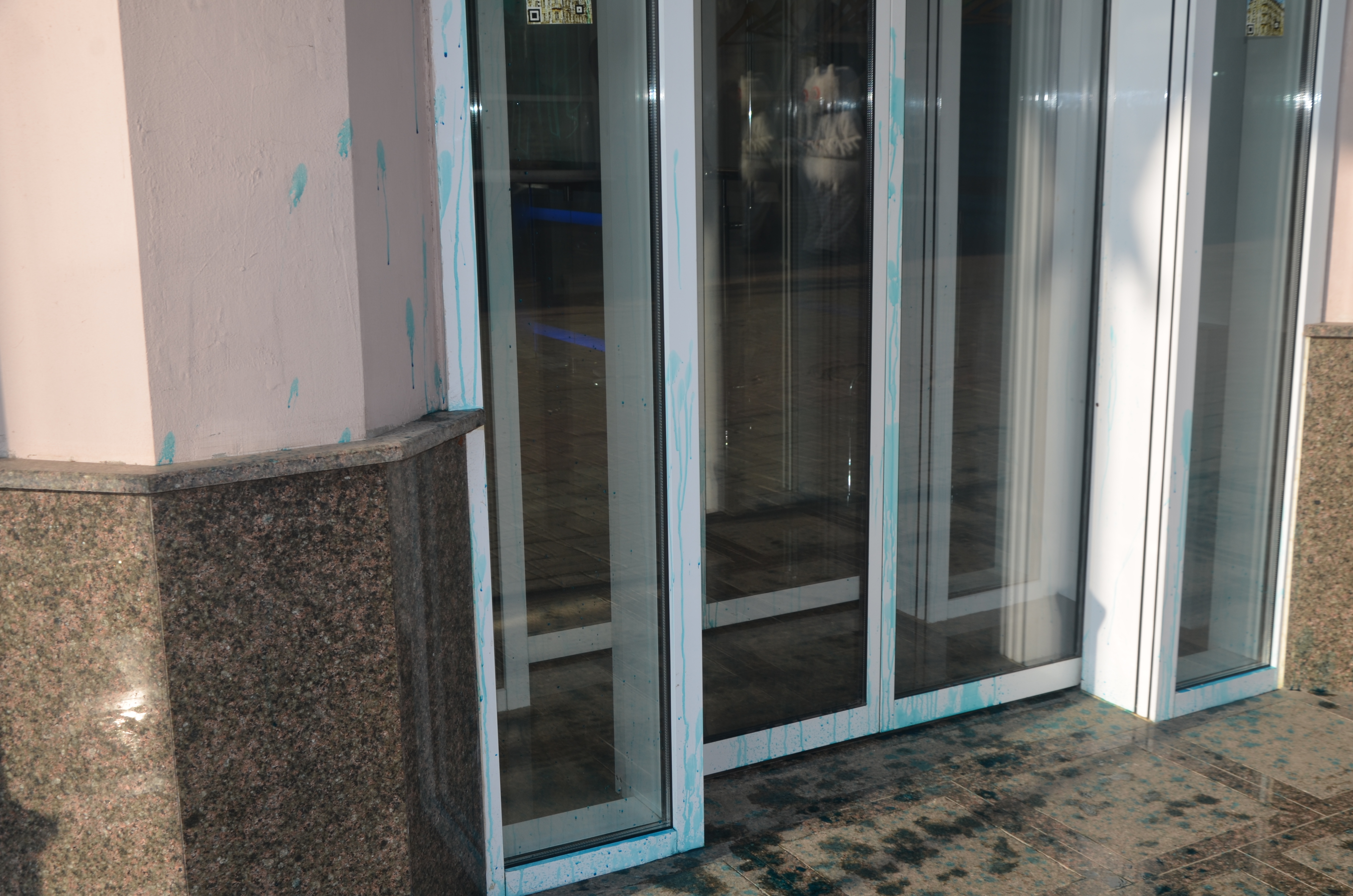 Внаслідок цього було пошкоджено вхідні двері установи, стіни будівлі та сходи.