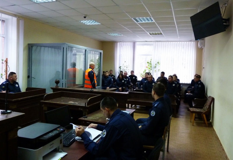 Також відпрацювали алгоритм дій під час спілкування з представниками ЗМІ, виникнення суперечок між учасниками судового процесу і вчинення ними протиправних дій та порушення громадського порядку.