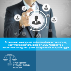 Наказом Державної судової адміністрації України від 30 січня 2020 року №45 оголошено конкурси на зайняття вакантних посад заступників начальників територіальних управлінь Державної судової адміністрації України.