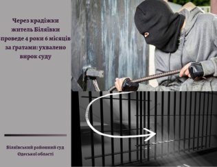 14 лютого 2020 року Біляївський районний суд Одеської області визнав громадянина М. (раніше засудженого Приморським районним судом м. Одеса за грабіж) винним у вчиненні злочинів, передбачених частиною третьою статті 185 Кримінального кодексу України (таємне викрадення чужого майна (крадіжка), вчинене повторно, поєднане з проникненням в інше приміщення), частиною третьою статті 15, частиною третьою статті 185 Кримінального кодексу України (незакінчений замах на таємне викрадення чужого майна (крадіжка), вчинене повторно, поєднане з проникненням в інше приміщення) і призначив йому покарання: - за частиною третьою статті 185 Кримінального кодексу України у вигляді 4 років позбавлення волі; - за частиною третьою статті 15, частиною третьою статті 185 КК України у вигляді 3 років позбавлення волі.
