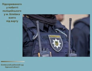 13 квітня 2020 року Біляївський районний суд Одеської області, задовольнив клопотання слідчого СВ Біляївського ВП ГУ НП в Одеській області та застосував до громадянина Т. (1992 року народження), підозрюваного у скоєнні злочину, передбаченого частиною другою статті 345 Кримінального кодексу України (умисне заподіяння працівникові правоохоронного органу середньої тяжкості тілесних ушкоджень у зв'язку з виконанням цим працівником службових обов'язків), запобіжний захід у вигляді тримання під вартою в ОСІ.
