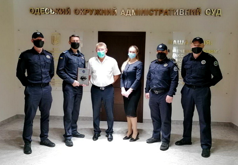 Начальник Територіального управління Служби судової охорони у Одеській області полковник Служби судової охорони Петро Талпа вручив керівництву суду символічний знак Служби на підтвердження того, що відтепер судді, працівники апарату суду та усі учасники судового процесу перебуватимуть у повній безпеці.