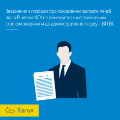 Велика Палата ВС дійшла висновку, що статті 99, 100 КАС України (у редакції, чинній до 15 грудня 2017 року) не підлягають застосуванню до спорів, які виникли у зв’язку поновленням виплати раніше призначених (нарахованих) пенсій громадянам України, які проживають за її межами, на підставі Рішення Конституційного Суду України від 7 жовтня 2009 року № 25-рп/2009. Зважаючи на те, що непроведення виплати пенсії таким особам відбулося з вини держави в особі її компетентних органів, поновлення виплати пенсії має проводитися без обмеження будь-яким строком.