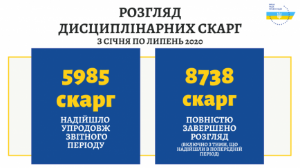 Протягом перших семи місяців 2020 року до Вищої ради правосуддя надійшло на 6% більше скарг щодо дисциплінарного проступку судді, ніж за аналогічний період 2019 року.