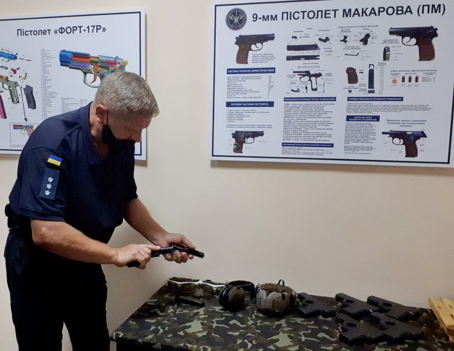 Співробітники Служби ознайомилися зі зразками зброї, яка перебуває на озброєнні правоохоронних органів України, удосконалили навички поводження зі зброєю та виконали вправи навчальних стрільб із пістолета Форт-17Р.
