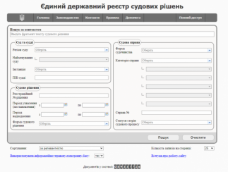 Для того щоб результат пошуку в Реєстрі судових рішень України не містив певного значення, перед таким пошуковим словом потрібно поставити знак — (мінус). Приклад: накладення арешту -рухоме майно.
