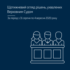 3 вересня Касаційний кримінальний суд у складі ВС частково погодився із доводами касаційної скарги потерпілої, котра оскаржувала вирок Одеського апеляційного суду від 19 листопада 2019 року щодо м’якості покарання особі, яка, як установили суди, влітку 2018 року в Одесі збила людину на пішохідному переході. В результаті дорожньо-транспортної пригоди пішохід отримав тяжкі тілесні ушкодження, від яких помер у лікарні. (Постанова ККС ВС від 3 вересня 2020 року у справі № 523/13774/18, провадження № 51-305км20)