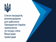 Оприлюднено список кандидатів, рекомендованих для здійснення Президентом України призначення на посаду члена Вищої ради правосуддя