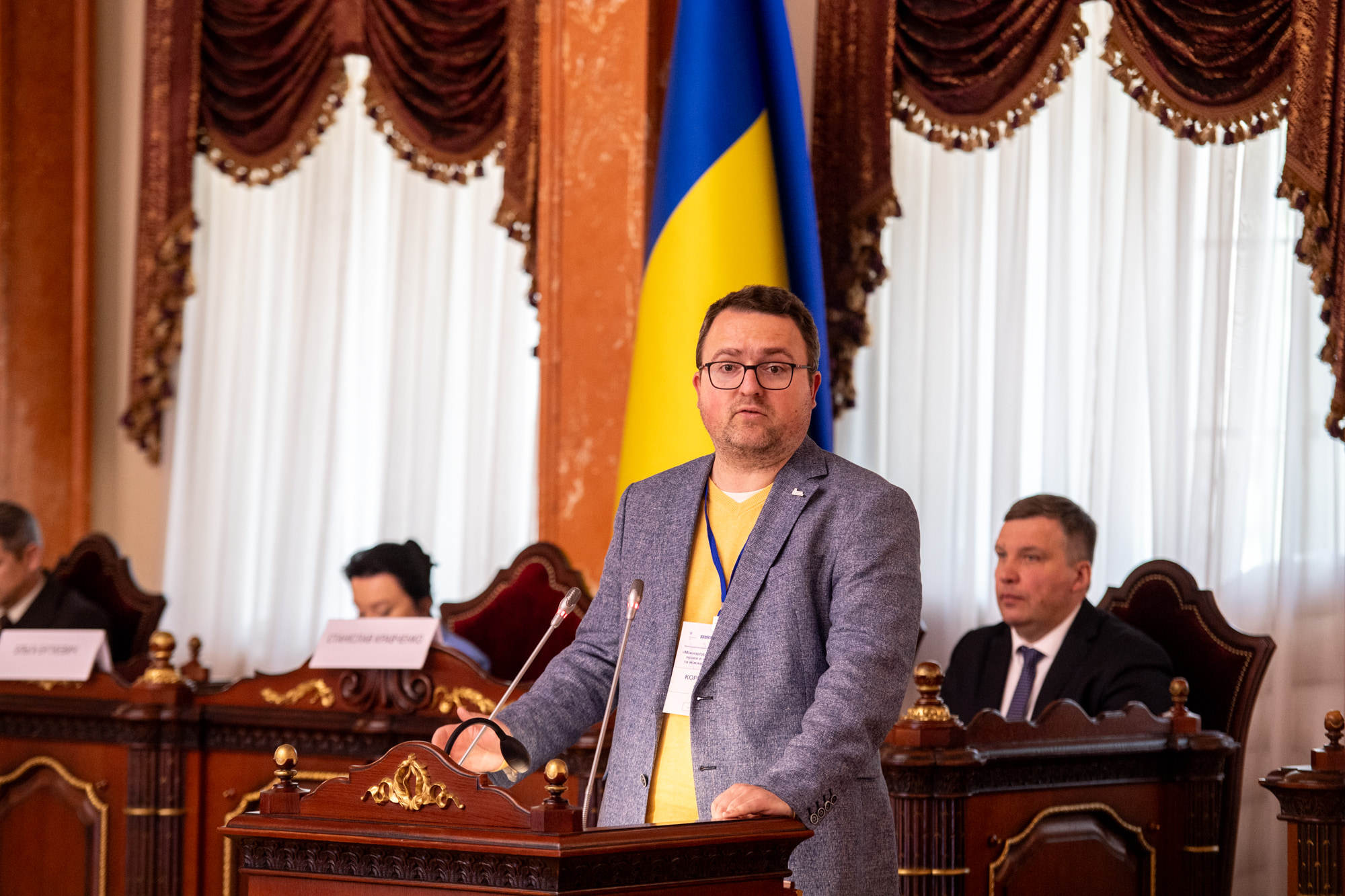 Про основні аспекти співробітництва України з МКС та практику використання інших механізмів у розслідуванні найтяжчих злочинів, які зараз вчиняються на території України, поінформував учасників заходу представник Департаменту протидії злочинам в умовах збройного конфлікту Офісу Генпрокурора Микола Говоруха. Одним із досягнень співпраці з МКС стало доповнення КПК України відповідним розділом, який унормовує міжнародно-правову співпрацю України з інституцією. Доповідач звернув увагу й на те, що Україна, на відміну від інших країн, проводить розслідування безпосередньо під час збройного конфлікту, а не після його завершення, що вносить певні особливості у співпрацю з МКС та розслідування зокрема. Він також відзначив суттєву перевантаженість правоохоронних і судових органів через велику кількість зареєстрованих воєнних злочинів та додав, що допомога міжнародних партнерів є вкрай важливою. Завдяки співпраці ОГП та МКС зараз вже зареєстровано чотири ордери на арешт керівників рф та окреслено подальші напрями роботи.