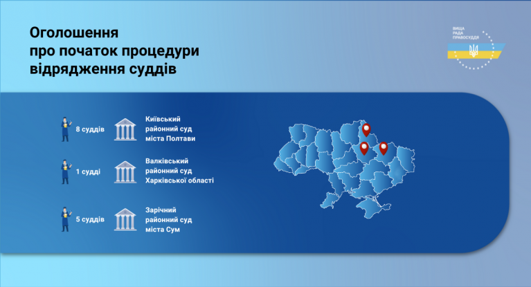 Вища рада правосуддя оголошує про початок процедури відрядження суддів до іншого суду того самого рівня і спеціалізації для здійснення правосуддя.