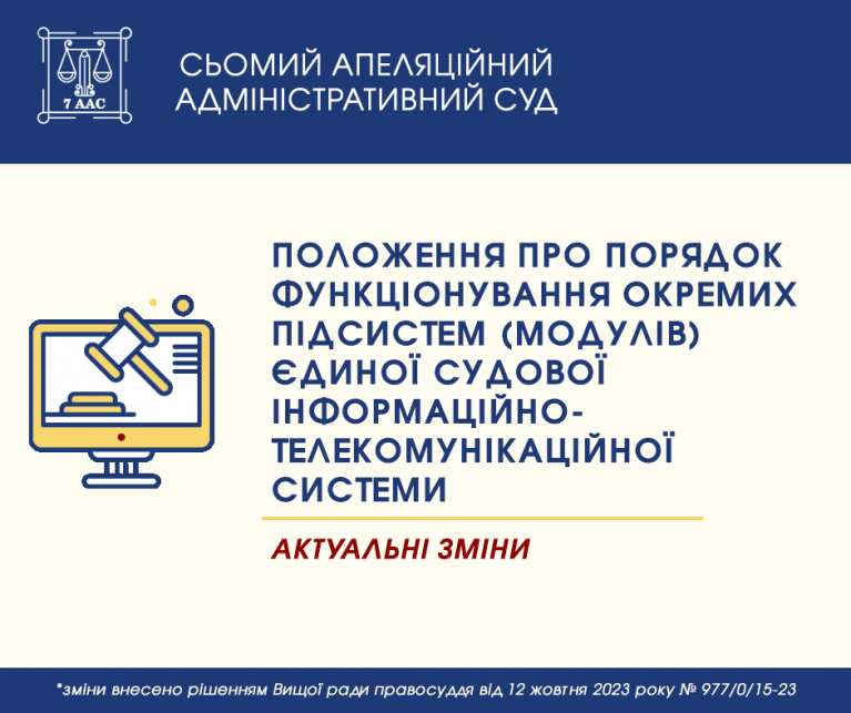 До Положення про порядок функціонування окремих модулів ЄСІТС внесені зміни. Новації передбачені рішенням ВРП від 12 жовтня 2023 року № 977/0/15-23.