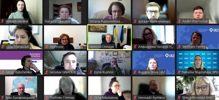 Від донорських проєктів: Антикорупційної ініціативи Європейського Союзу в Україні – національний експерт Андрій Химчук; Програми USAID “Справедливість для всіх” – заступниця керівника Наталія Петрова, радники з юридичних питань Ірина Зарецька та Ольга Ніколаєва; проєкту ЄС-РЄ “Посилення режиму боротьби з відмивання коштів, фінансування тероризму та повернення активів” – старший проєктний менеджер Сергій Рибченко; проєкту РЄ “Зміцнення прав людини у системі кримінальної юстиції України” – радник з правових питань/національний координатор Артур Карвацький та асистент Ярослав Гнатюк; проєкту РЄ “Підтримка судової влади України в забезпеченні кращого доступу до правосуддя” – менеджерка Ірина Кушнір; Німецького міжнародного фонду правового співробітництва – старший менеджер проєктів Вольфрам Гертіг та менеджерка проєктів Руслана Роса; проєкту Програми підтримки ОБСЄ для України “Гарантування дотримання прав людини при здійсненні правосуддя. Фаза ІІ” – національна менеджерка Наталія Ступницька. До обговорення долучився керівник апарату Вищого антикорупційного суду Богдан Крикливенко.