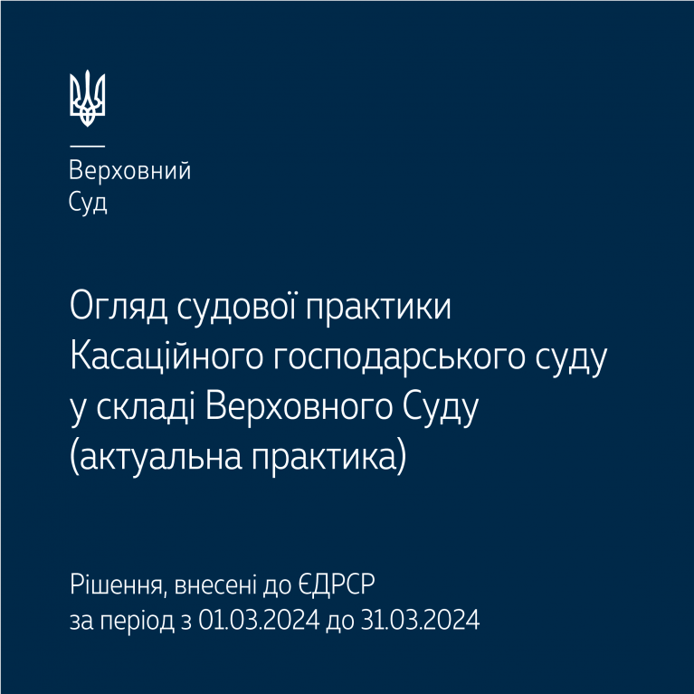 Верховний Суд опублікував огляд актуальної судової практики Касаційного господарського суду у складі Верховного Суду за березень 2024 року. В ньому висвітлено низку правових позицій в окремих категоріях спорів, що належать до господарської юрисдикції.