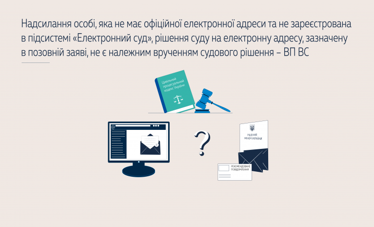 Натомість Велика Палата ВС звернула увагу на те, що процесуальне законодавство, чинне на час ухвалення рішення судом першої інстанції, передбачало два способи надсилання судового рішення: направлення рекомендованим листом з повідомленням про вручення та направлення в електронній формі через підсистему «Електронний кабінет», у тому числі шляхом направлення листа на офіційну електронну пошту засобами підсистем ЄСІТС у випадках, передбачених п. 37 гл. 2 розд. ІІІ Положення про ЄСІТС.