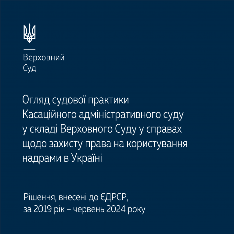 До уваги пропонуємо огляд судової практики Касаційного адміністративного суду у складі Верховного Суду у справах щодо захисту права користування надрами в Україні – https://supreme.court.gov.ua/userfiles/media/new_folder_for_uploads/supreme/sud_pract/Oglyad_KAS_korist_nadra.pdf.