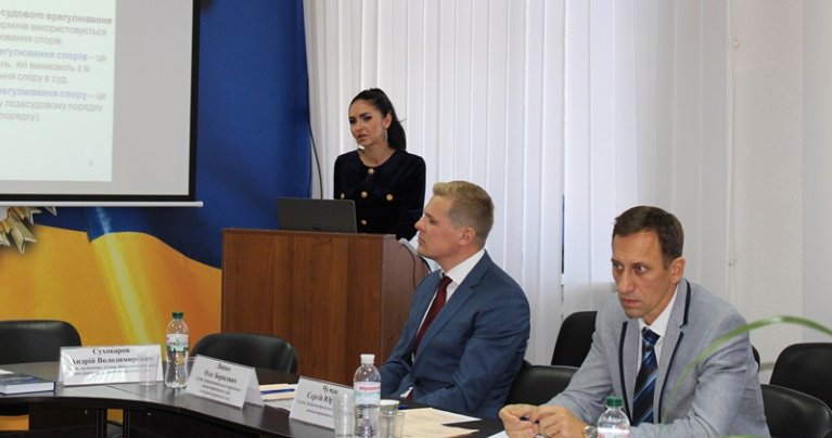 Заступник начальника відділу розгляду звернень та забезпечення діяльності комісії з питань розгляду скарг у сфері державної реєстрації Управління державної реєстрації Головного територіального управління юстиції у Дніпропетровській області Кристина Потапова зосередила увагу суддів на досудовому врегулюванні спорів, що виникають під час надання публічних послуг, та ознайомила із практикою розгляду скарг на дії посадових осіб (реєстраторів), які надають публічні послуги.