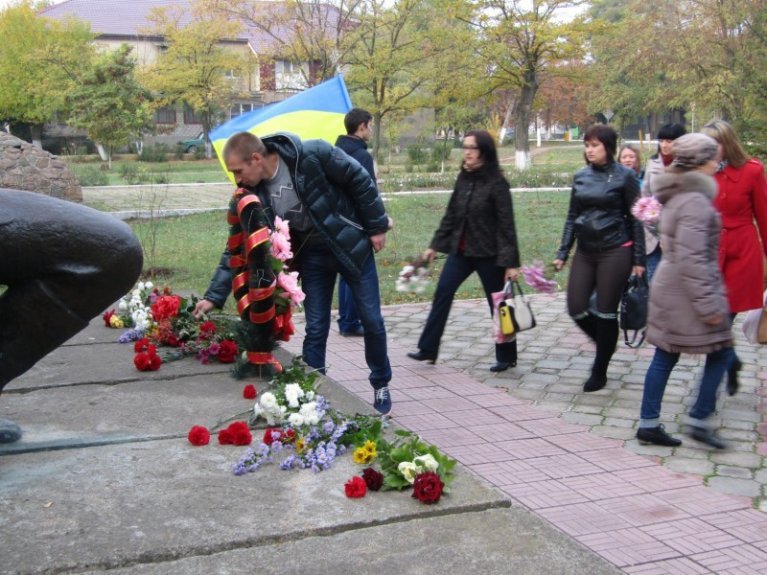 Учасники мітингу вшанували пам’ять загиблих хвилиною мовчання та  покладанням квітів до меморіалу.