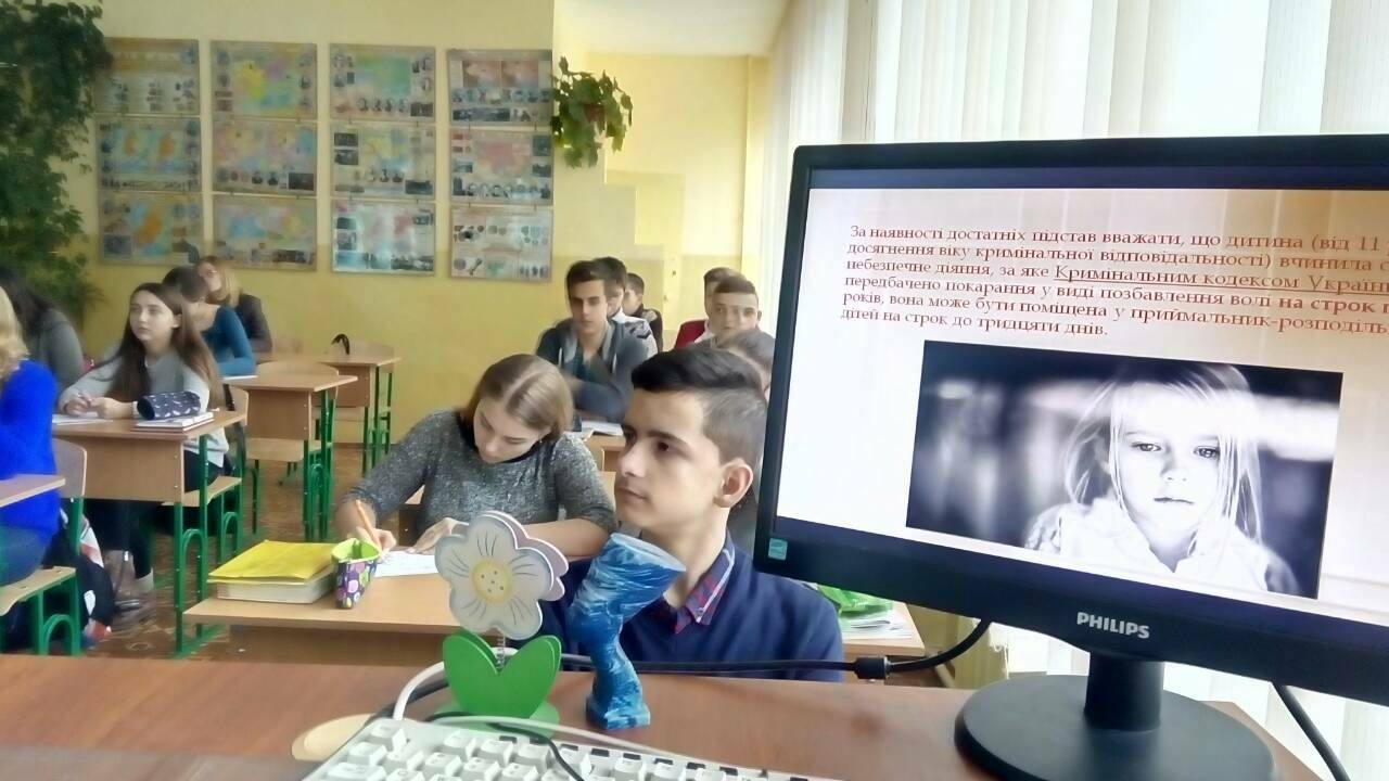 Учні змогли дізнатись також про особливості кримінальної і адміністративної відповідальності неповнолітніх та їх батьків. Юлія Салдан роз’яснила, що міри відповідальності та заходи впливу з боку держави за вчинені ними правопорушення є досить серйозними і кожен повинен усвідомлювати це, а не легковажно розраховувати на "поблажки" з боку суду через неповноліття. Не оминули й теми судової реформи та якісної юридичної освіти.