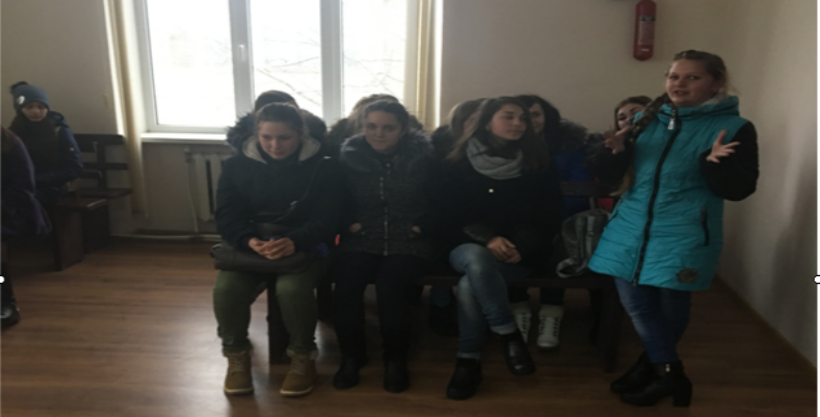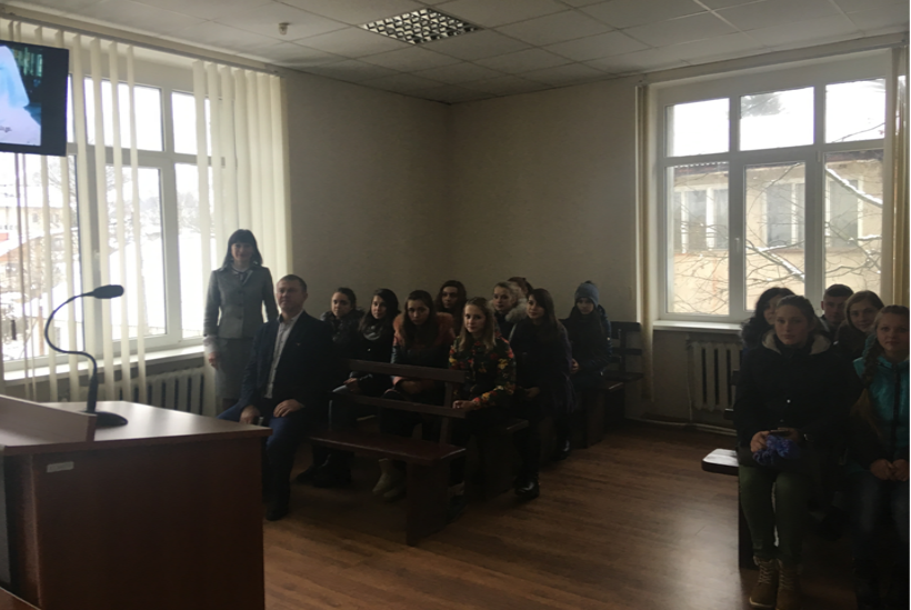 Біля самого входу з вітальним словом до учнів звернулися керівник апарату суду Людмила Іваницька та заступник керівника апарату Віталія Когут і провели їх до залу судових засідань, в якому слухаються кримінальні справи.
