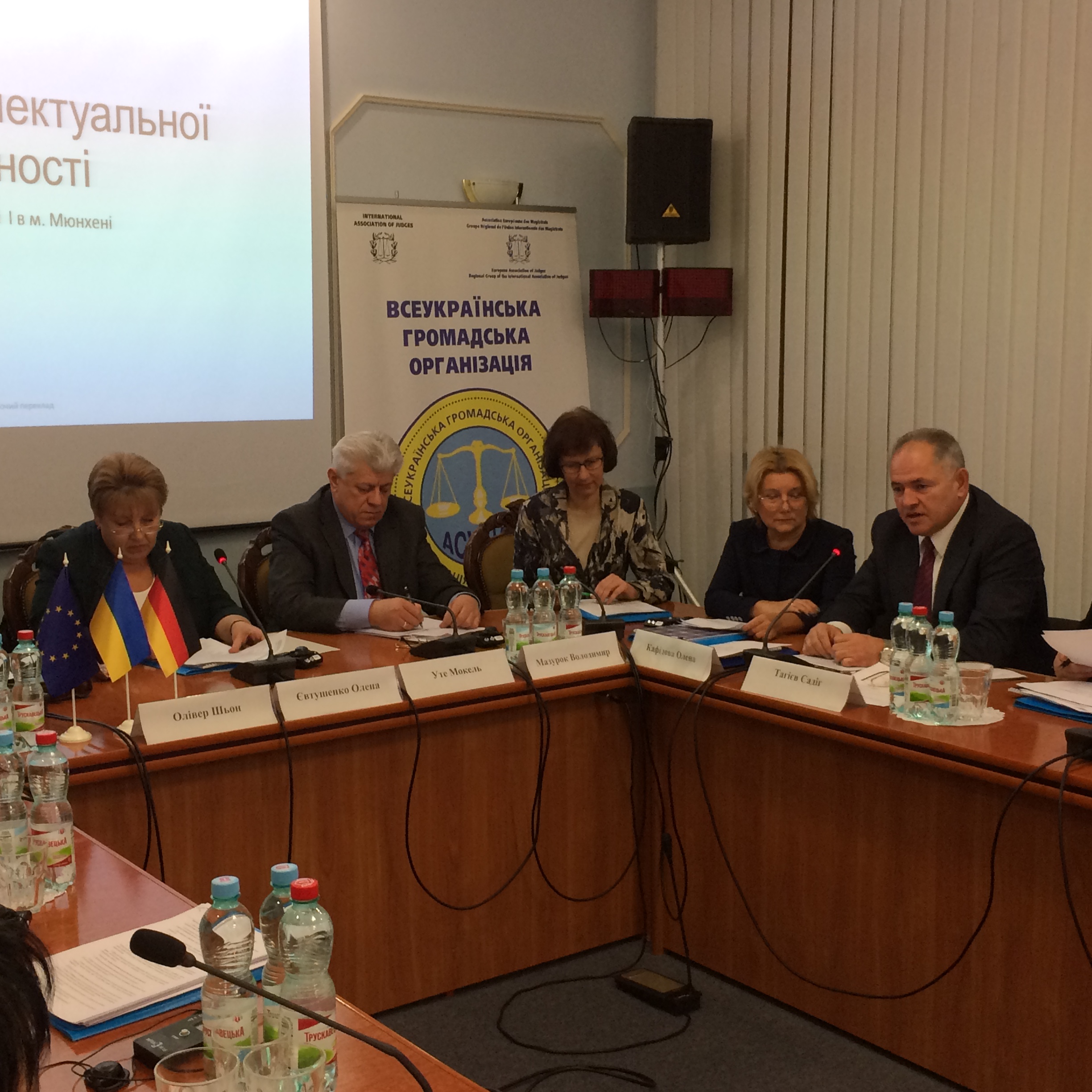 Суддя Суду землі м. Мюнхен Др. Олівер Шьон та суддя Вищого суду землі м. Франкфурт-на-Майні Др. Уте Мокель ознайомили українських колег з основами німецької правової системи захисту інтелектуальної власності; сутністю, особливостями виникнення та передачі авторських прав згідно з німецьким законодавством. Зокрема, Др. Олівер Шьон звернув увагу на високу спеціалізацію судів у Німеччині, що оптимізує розгляд конкретних категорій справ та сприяє утворенню сталої судової практики. Він зазначив, що розгляд справи про захист права інтелектуальної власності є досить тривалим та може становити від 8 до 12 місяців з моменту відкриття провадження у справі. Крім того, як не дивно, при розгляді відповідних категорій справ німецькі судді вкрай рідко звертаються за допомогою до судових експертів.