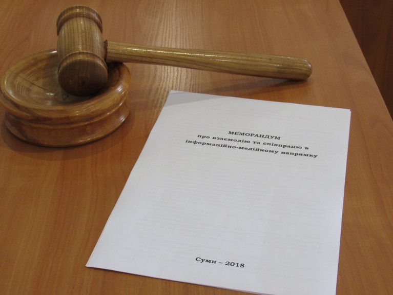 Очільники установ підписали Меморандум про взаємодію та співпрацю в інформаційно-медійному напрямку. Проект передбачає створення Інфо-медіа центру судової влади Сумської області - комунікативної платформи, яка забезпечуватиме жителів області, в першу чергу, своєчасною та об’єктивною інформацією про здійснення правосуддя на Сумщині. Окрім того, зусилля медіа центру будуть спрямовані на покращення рівня обізнаності суспільства щодо діяльності судової гілки влади, оцінку потреб населення в отриманні інформації про судові процедури, підготовку програм інформування населення і, звісно, налагодженню ефективної співпраці та партнерства із засобами масової інформації.