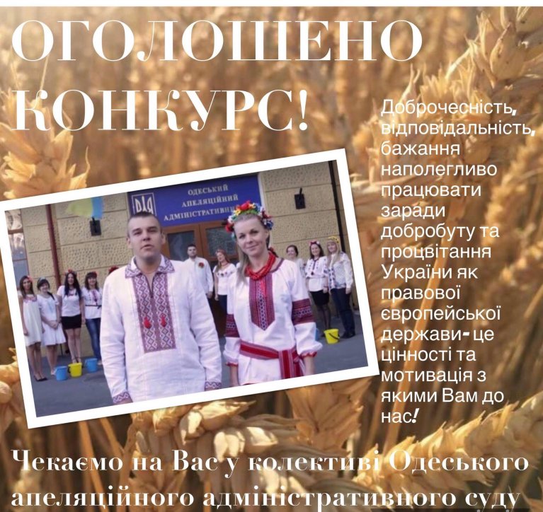 Одеський апеляційний адміністративний суд оголошує конкурс на зайняття вакантних посад державної служби категорії «В»:
