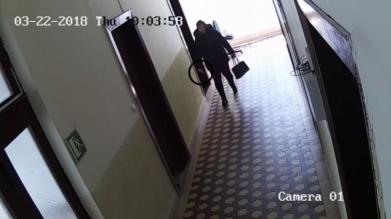 Відеозапис камери спостереження зафіксував нестандартну (дивну) поведінку одного з відвідувачів суду, яка полягала в наступному: особа жіночої статі, вийшовши з вбиральні (туалету), де ймовірно підготувалась до «акції», посіяла вхід перед кабінетом і приймальнею одного з суддів незрозумілу речовину, яка при реальному огляді виявилась маком і сіллю. «Добродійка» намагалась робити це непомітно, очевидно усвідомлюючи, що ці дії можуть бути зафіксовані.